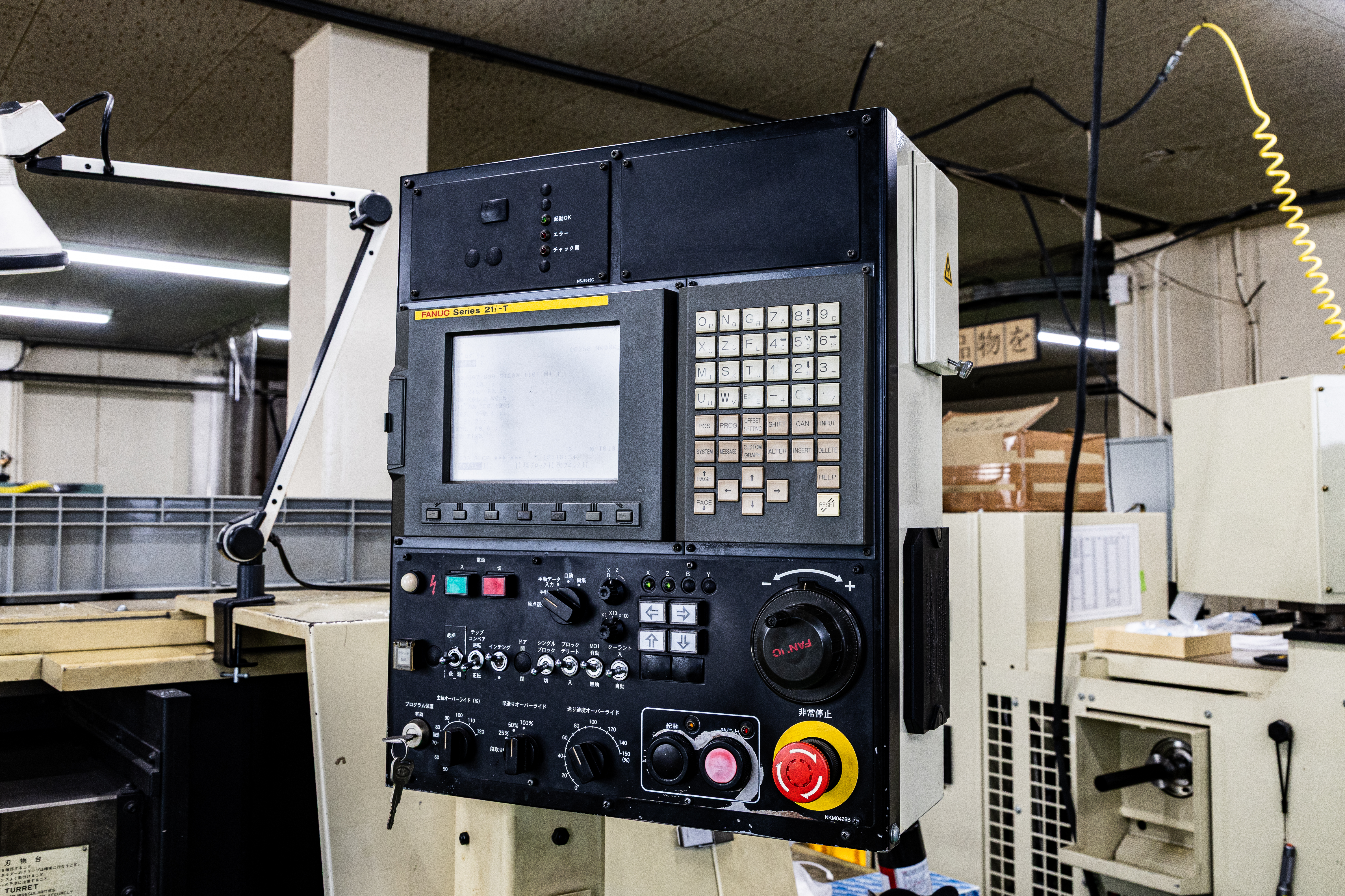 FANUC21i-TB制御と8吋3爪中空チャック、12角タレットを搭載し、X145mm・Z510mmの広ストロークを誇る汎用NC旋盤。センター付き・ツールプリセッタ装備で、段取り効率と精度を両立した一台です。